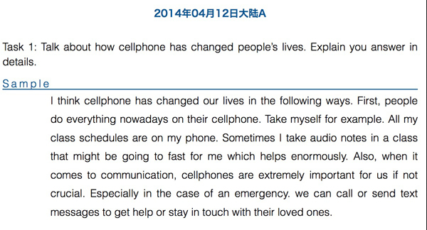 2014年4月12日托福口语答案:大陆A Task 1