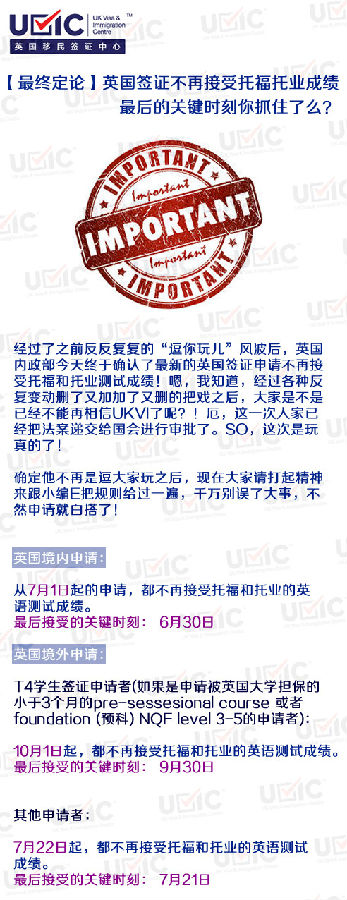 经过之前反反复复的“逗你玩儿”风波后,英国内政部今天终于确认了最新的英国签证申请不再接受托福和托业测试成绩!