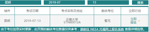【点击查看2019年7月托福考位发放时间_剩余考位查询(汇总)】