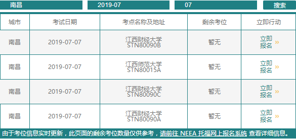 以上就是为大家整理的“江西托福考位查询:2019年7月托福剩余考位情况”,更多精彩内容请关注新东方在线托福频道!