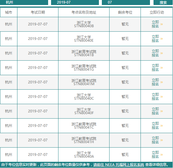 【点击查看2019年7月托福考位发放时间_剩余考位查询(汇总)】