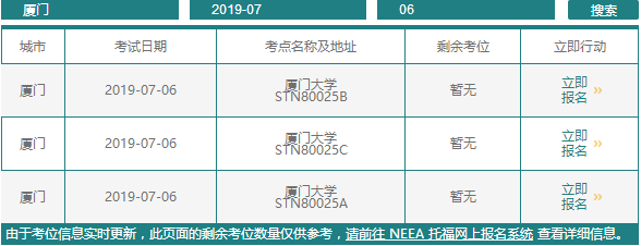 【点击查看2019年7月托福考位发放时间_剩余考位查询(汇总)】