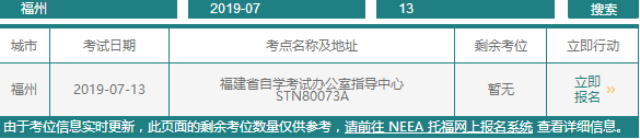 以上就是为大家整理的“福建托福考位查询:2019年7月托福剩余考位情况”,更多精彩内容请关注新东方在线托福频道!