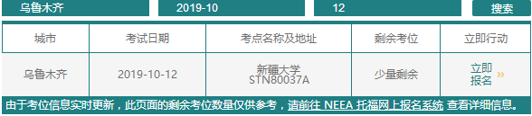 以上就是为大家整理的“新疆托福考位查询:2019年10月托福剩余考位情况”,更多精彩内容请关注新东方在线托福频道!