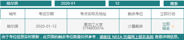 以上就是为大家整理的“黑龙江托福考位查询:2020年1月托福剩余考位情况”,更多精彩内容请关注新东方在线托福频道!