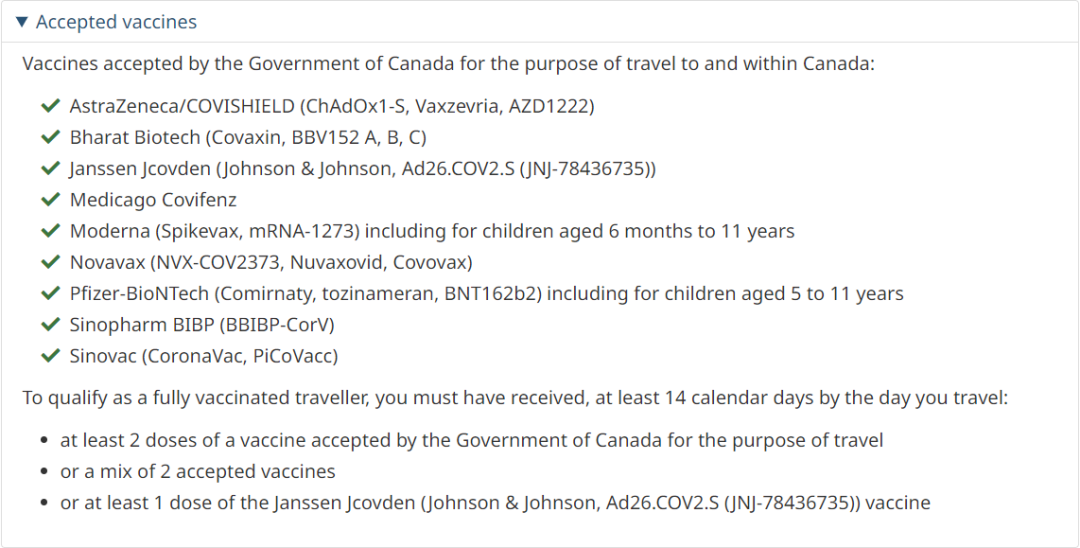 目前加拿大政府接受的疫苗: