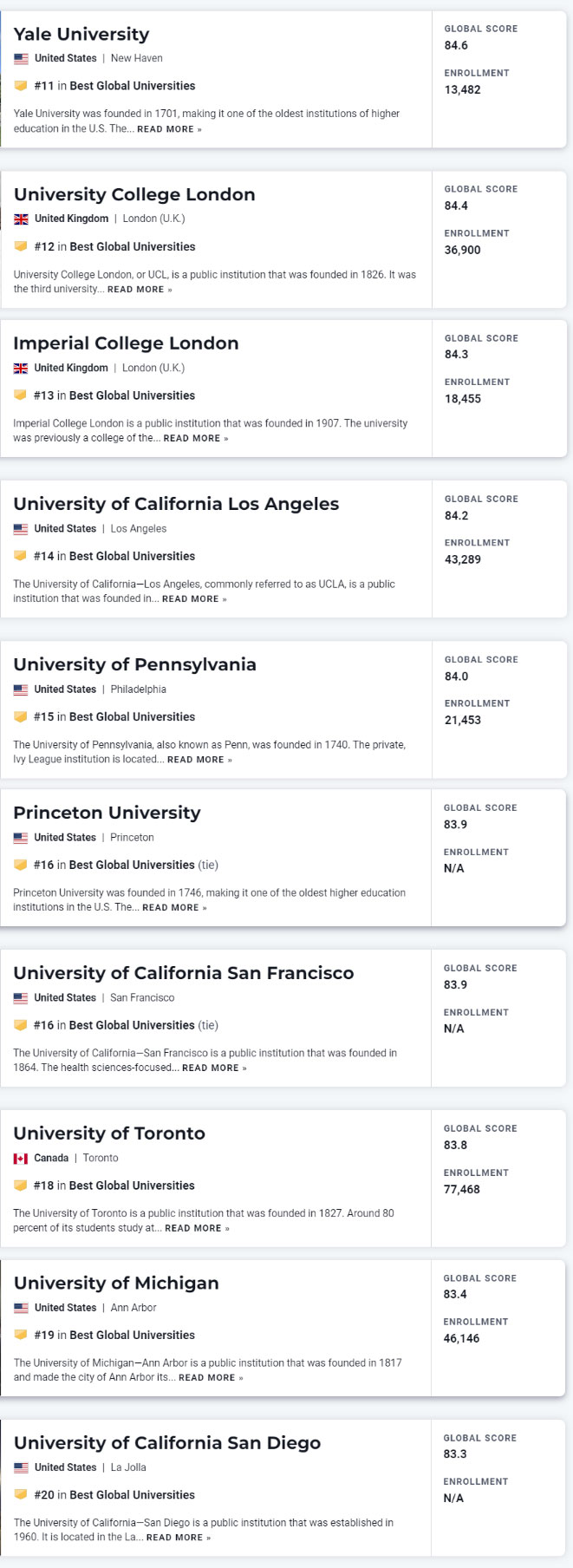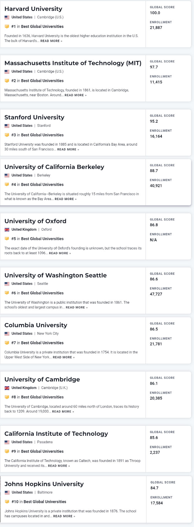 下面一起看下usnews世界大学具体排名情况~