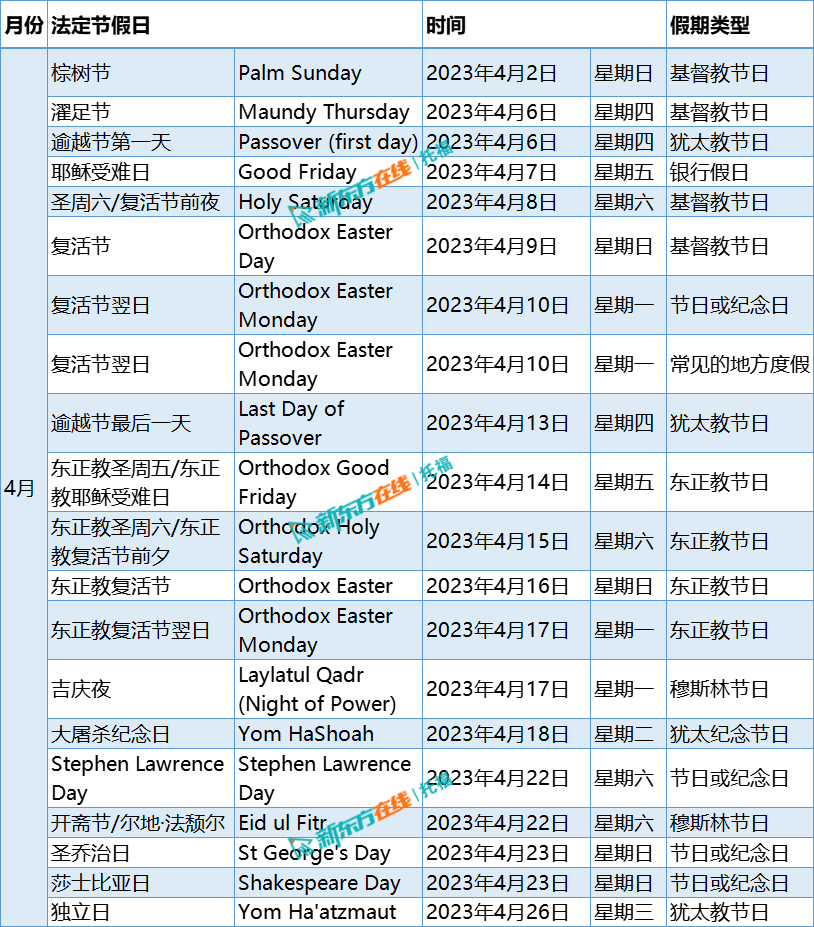 2023年4月英国节假日是怎么安排的?4月英国有哪些法定节假日?新东方在线托福为您整理2023年4月英国节假日安排表,希望对大家有所帮助。