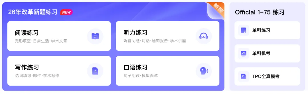 新东方在线上线了针对新托福的全新课程体系,包括一对一、直播小班、录播课等班型,帮助你顺畅衔接新托福考试。