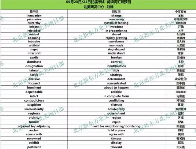 本文是9月16日/9月17日托福读词汇预测,2017年9月16日/9月17日托福考试可能出现的托福阅读词汇题会考哪些内容呢?新东方在线整理分享托福阅读词汇题预测,以帮助考生做好考前冲刺备考...
